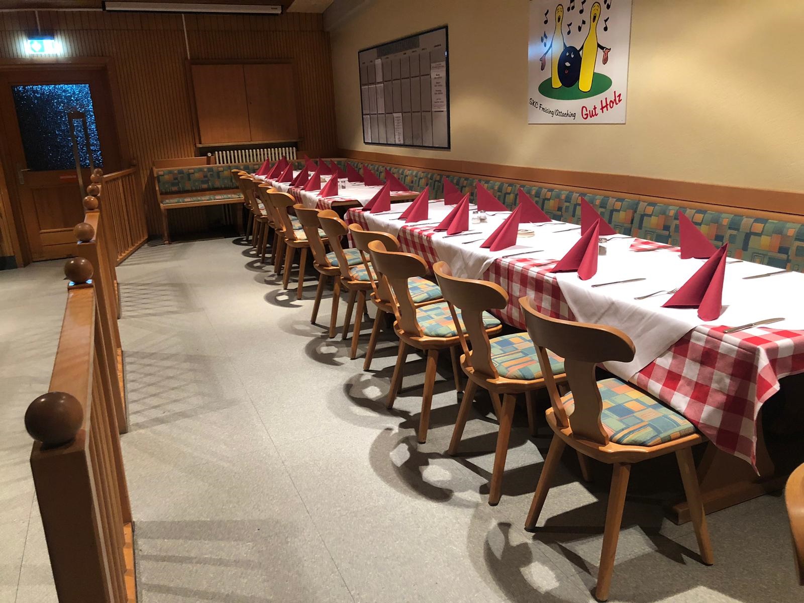 Hier können Sie für 10,00 € stündlich Kegeln und sich von uns mit leckeren Speisen und Getränken verwöhnen lassen, es ist für bis 95 Personen geeignet.